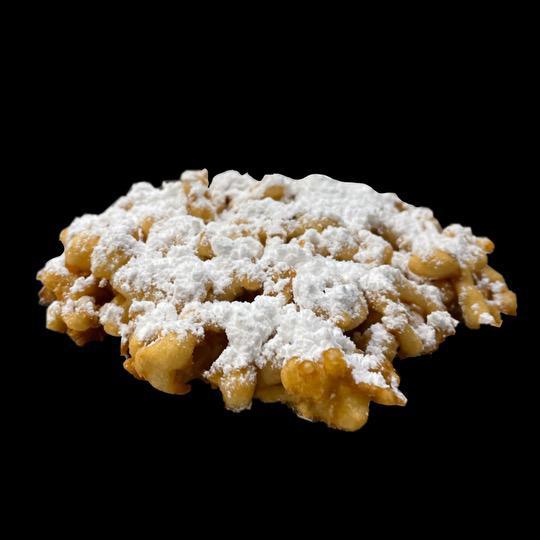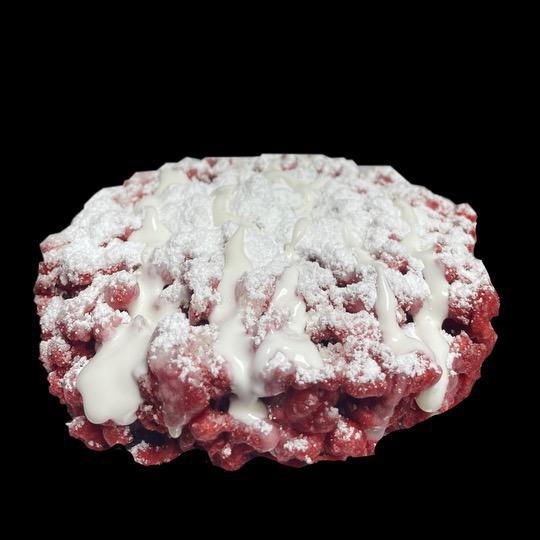 Red Velvet Funnel Cake, Powdered Sugar, & Cream Cheese Drizzle